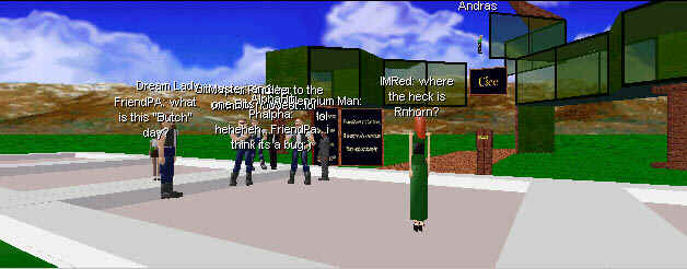 | Ok, below are come picture I took of someone's party. It gives you an idea how everyone are really nice. You can ask them to pretty much what you want, well certain things are banned if you know what I mean. I am not trying to sell Active Worlds, I was icy cold to the idea at first but my friend Mnementh showed me and I warmed up the idea and now I enjoy it the Active World over. |